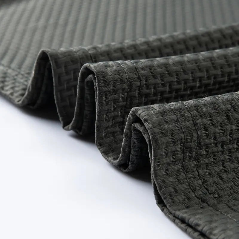 Crafted with a smart-knit performance fabric, it offers all-day breathability and movement. The subtle geometric texture allows airflow while maintaining structure and elegance.